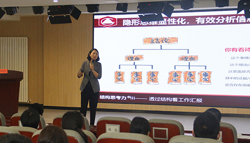 “思考是人類最大的樂趣”。為提高員工思考和表達(dá)能力,建立彼此交流時共同的思維和語言平臺,提高組織溝通效率,10月23日,集團(tuán)邀請楊秀萍老師為鄭地英才班講授《透過結(jié)構(gòu)看工作匯報》,集團(tuán)總部及子公司共150余名員工參加。