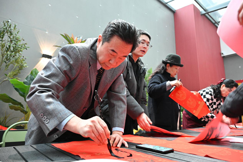 壓紙、蘸墨、揮筆、走字……在鼎盛美寓和開元美寓的共享空間里,書法家們揮毫潑墨、筆走龍蛇,一個個寓意吉祥的“福”字、一副副飽含美好祝福的春聯(lián)紛紛呈現(xiàn)在大家眼前,為即將到來的蛇年春節(jié)增添了濃濃的喜慶氛圍。