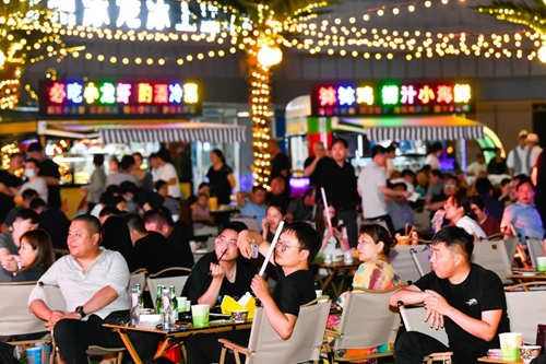 熠熠星光耀向夜空,呼應(yīng)著霓虹閃爍的奧體中心,飄散的煙火氣和美食的香氣充斥著整個(gè)下沉空間,舞臺(tái)音樂節(jié)奏歡快、火爆酷炫,在霓虹交錯(cuò)的空間里,一天的時(shí)間仿佛被夜市拉長,這是年輕人帶給這座城市的無限活力。