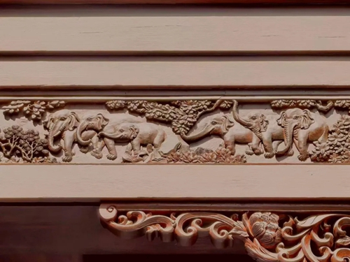 12號(hào)樓主題為獅子,主題來(lái)源于三門峽靈寶函谷關(guān),象征“事事如意”的獅子在柱子、平板枋、額枋、卡子花、假梁頭等構(gòu)件均有出現(xiàn)。