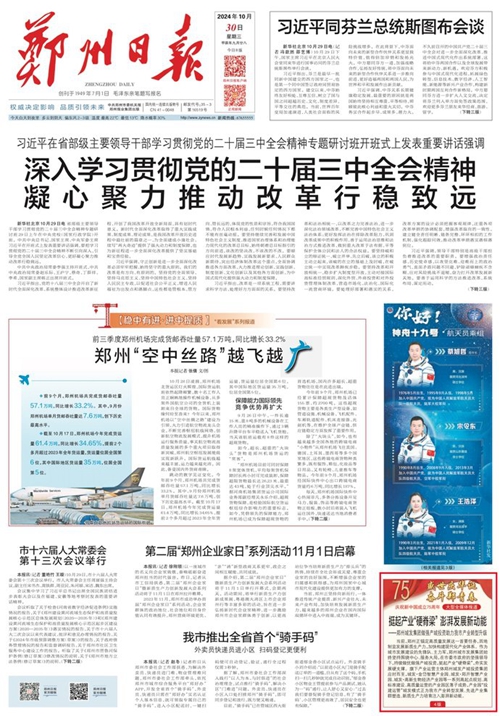 黨的二十屆三中全會提出,高質量發(fā)展是全面建設社會主義現(xiàn)代化國家的首要任務。當前,鄭州正錨定高質量發(fā)展這一首要任務,因地制宜發(fā)展新質生產力,加快構建現(xiàn)代化產業(yè)體系。