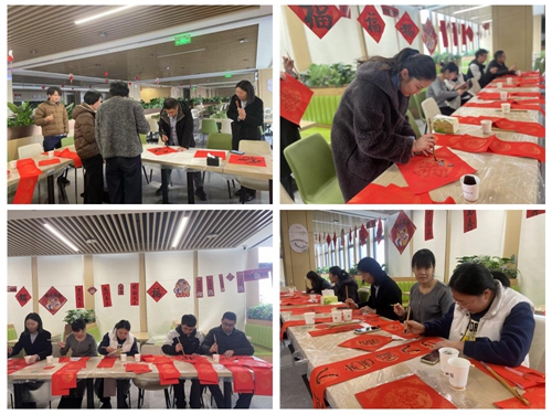 在這如詩(shī)如畫的美好時(shí)刻,我們以一副春聯(lián)凝聚夢(mèng)想的光輝,迎接新春的腳步。活動(dòng)伊始,來(lái)自城發(fā)產(chǎn)城公司工程設(shè)計(jì)部的張馨友老師現(xiàn)場(chǎng)揮毫潑墨,他的筆下,每一劃都似春風(fēng)拂面,每一點(diǎn)都像細(xì)雨潤(rùn)心,將美好的愿景與溫暖的問候融入到那一幅幅靈動(dòng)的字跡之中。與此同時(shí),活動(dòng)現(xiàn)場(chǎng)精心準(zhǔn)備了豐富的書寫工具,這里,不僅是紙墨交融的地方,更是心靈交匯、智慧碰撞的空間,在揮灑筆墨的過程中體驗(yàn)到了傳統(tǒng)文化的獨(dú)特魅力。