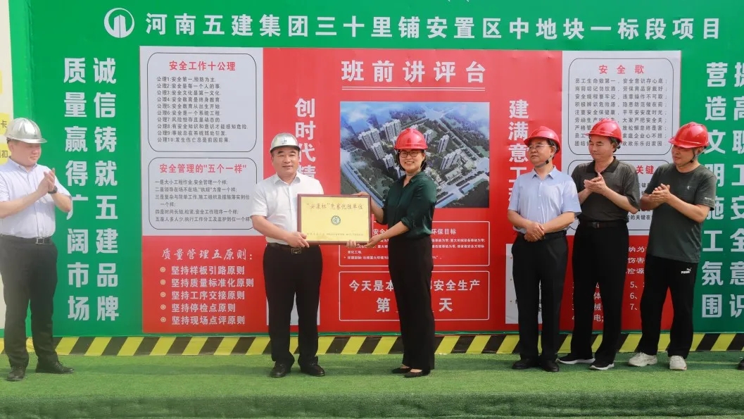 6月2日下午,鄭州市總工會機關(guān)工會主任王銀倉、市總工會勞動和經(jīng)濟部部長宋慧分別向集團兩家獲獎公司頒發(fā)鄭州市“安康杯”競賽優(yōu)勝單位獎牌。