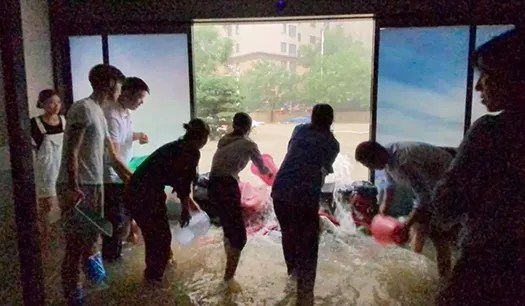 為盡快堵住倒灌的洪水大家群策群力,有的員工沖進(jìn)大雨中尋找沙袋堵水;有的員工往高處搶搬辦公設(shè)施或盡量抬高,盡量避免雨水浸泡;有的員工毫不猶豫的將自己的毛毯棉被拿出來去堵水,有的員工立即抄起舀水的工具參加到抗擊水患、保衛(wèi)公司的戰(zhàn)斗中。大家爭先恐后唯恐不能為公司出力,在大門前站不下太多人往外潑水的情況下,身單力小的員工主動(dòng)一桶一桶從后門往外提水,為我們的公司少受些損失而默默的奉獻(xiàn)著。