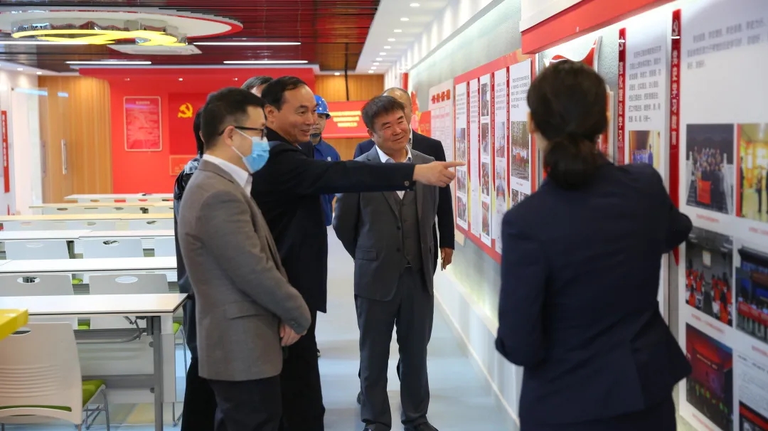 在鄭地投資公司黨支部省醫(yī)項(xiàng)目部,投資公司黨支部書記、董事長(zhǎng)楚紀(jì)方詳細(xì)匯報(bào)了黨支部以黨建智慧“大腦”為依托,圍繞“紅色物聯(lián)  融通萬(wàn)物”黨建特色品牌”,全力構(gòu)建“113N”黨建工作體系的特色做法。驗(yàn)收組一行詳細(xì)觀摩了省醫(yī)項(xiàng)目“紅色物聯(lián) 融通萬(wàn)物”黨建示范點(diǎn)創(chuàng)建觀摩展廳。張晟組長(zhǎng)高度肯定了投資公司省醫(yī)項(xiàng)目、綠城廣場(chǎng)地下綜合開(kāi)發(fā)等惠民項(xiàng)目在解決人民群眾“急難愁盼”問(wèn)題中展現(xiàn)的責(zé)任擔(dān)當(dāng),強(qiáng)調(diào)要繼續(xù)堅(jiān)持用黨的創(chuàng)新理論破解項(xiàng)目發(fā)展難題,以新方法新作為開(kāi)創(chuàng)工作新面貌,將黨建業(yè)務(wù)互促互融的政治優(yōu)勢(shì)轉(zhuǎn)化為項(xiàng)目建設(shè)優(yōu)勢(shì),把黨的政治優(yōu)勢(shì)轉(zhuǎn)化為項(xiàng)目中心工作發(fā)展的實(shí)際行動(dòng)。