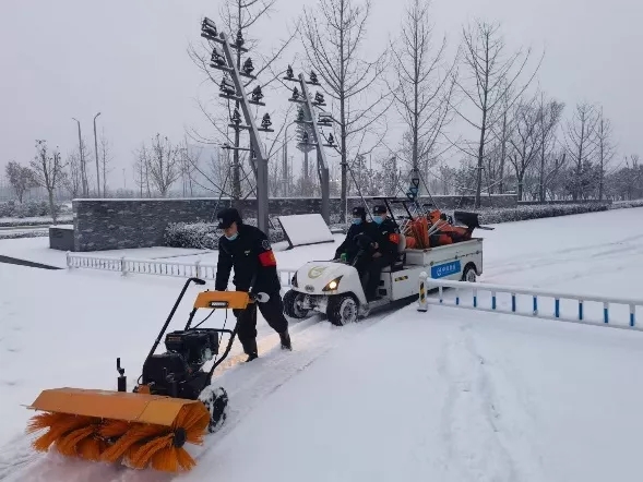 2022年1月19日,河南省氣象臺發(fā)布暴雪藍色預(yù)警,為應(yīng)對2022年二次來襲的暴雪,鄭州奧林匹克體育中心立即啟動應(yīng)急預(yù)案,實行責(zé)任區(qū)劃分和全員義務(wù)清理相結(jié)合的原則,所有人員“以雪為令,即下即清”,全面出動快速打響清雪除冰戰(zhàn)役,圓滿完成了本次鏟冰除雪工作任務(wù)。
